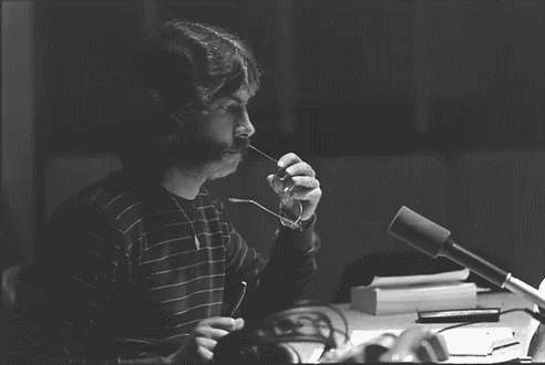 Alain Gallet fait écouter une maquette des titres d' Oniris à Dan Ar Braz lors d'un de ses passages à radio Armorique en tant qu'invité de l'émission radiophonique Sextant.